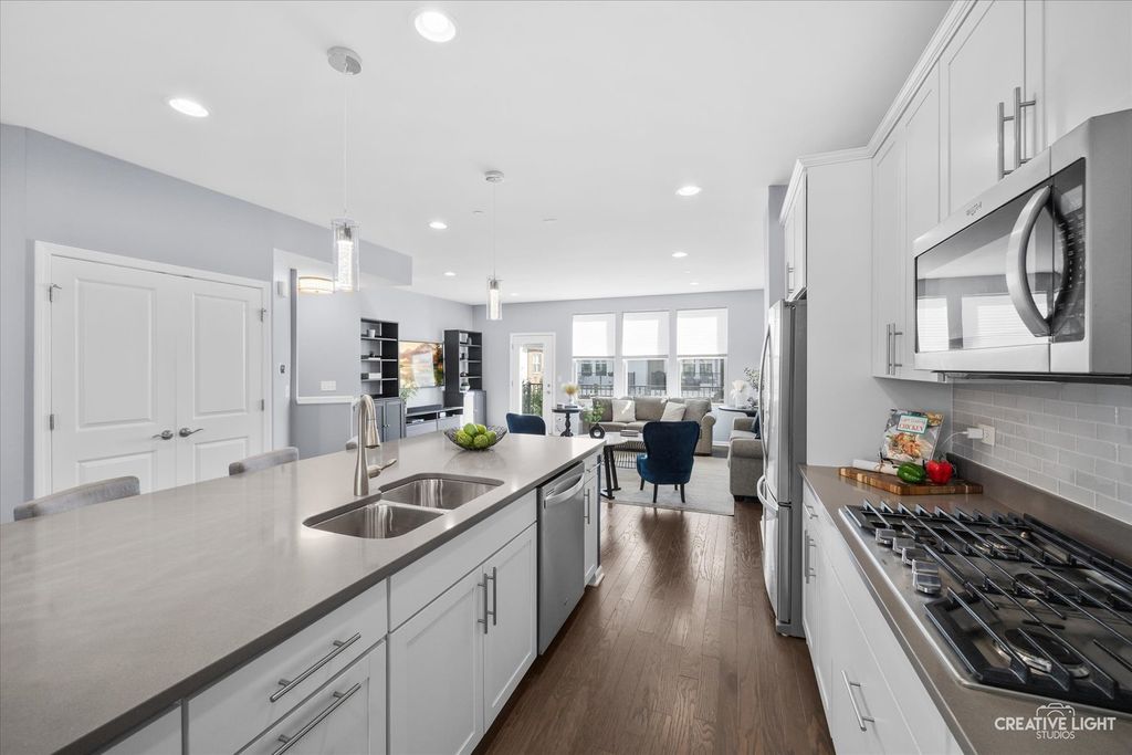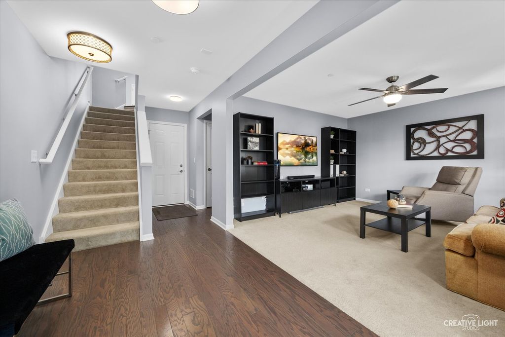 Welcome to this beautifully upgraded 3-bedroom, 3-story townhome that blends style, comfort and convenience. A covered front porch leads into a bright, airy foyer and a flexible living room/office space. Engineered hardwood floors flow through the main living areas, creating a warm and modern atmosphere. The family room features large windows for abundant natural light, recessed lighting and access to the private balcony. The spacious kitchen features an oversized island, large pantry, subway tile backsplash and a separate dining area full of charm. The primary suite impresses with neutral carpeting, a luxurious spa-like bath featuring a dual sink vanity and oversized glass shower, private commode and massive walk-in closet. Two additional bedrooms offer generous closet space and share a full bath. Enjoy the convenience of the bedroom-level laundry! Located in the Seven Bridges neighborhood with easy access to shops, dining, golf and entertainment, and a short drive to the commuter train. Downers Grove North HS. Upgrades galore and a location that can't be beat!