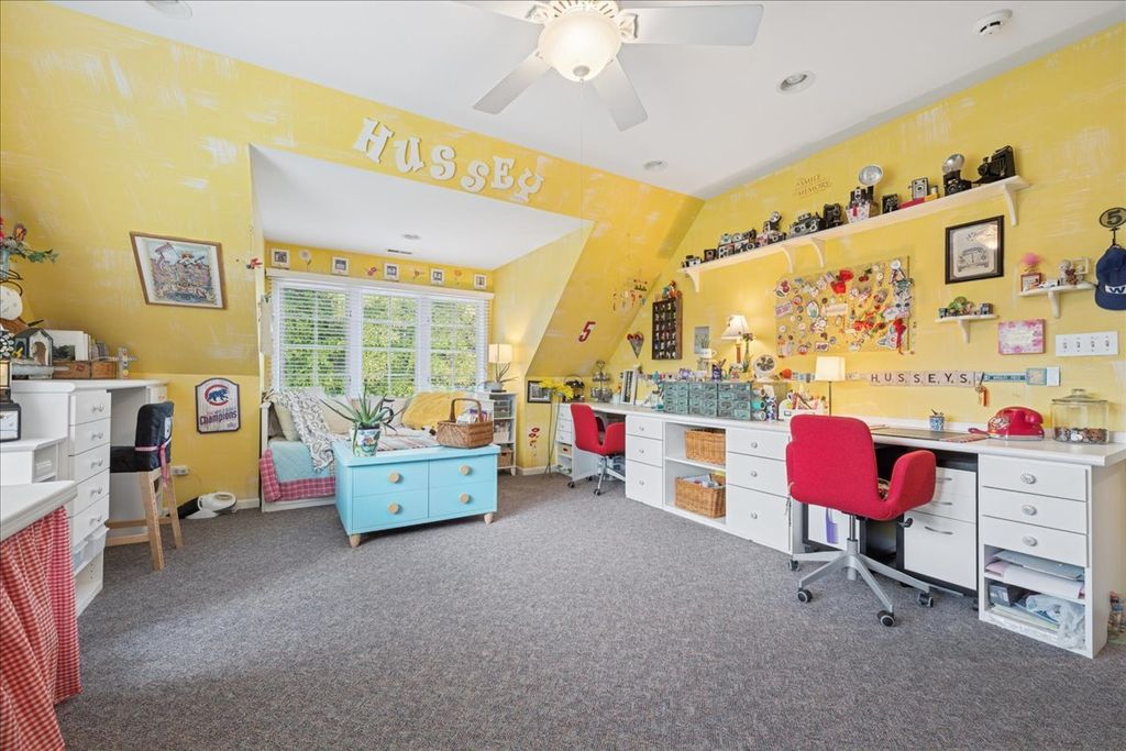 WELCOME TO YOUR PRIVATE PARADISE - One-of-a-Kind LUXURY ESTATE designed for grand living and unforgettable entertaining in Copperfield of Hawthorn Woods. Tucked away on approx 1 acre, this exquisite retreat offers 6,300+ sq ft of expertly crafted living space across three finished levels. The crown jewel of the home is the resort-style gunite in-ground swimming pool - a $250K+ custom creation with dual waterfalls, a thrilling waterslide, underwater seating ledges, an attached spa, exterior lighting and a heating system for added comfort when desired. The backyard also includes a spacious fire pit area invites cozy evening gatherings, while the expansive open lawn beyond is perfect for backyard sports and outdoor play. Inside, the home exudes sophistication, volume, and exceptional craftsmanship. The 1st and 2nd level spans 4,500+ sq ft and features hardwood floors and a seamless layout. The kitchen and first floor were completely reimagined in a luxury renovation exceeding approx $300K - no expense was spared. The chef's kitchen boasts a dramatic oversized island with a soft-touch, velvet-finish surface and sleek, designer-grade honed-granite countertops that radiate elegance. Top-tier stainless steel appliances, a stylish pot-filler, and a full wall of hand-crafted custom cabinetry complete the space. Adjacent is a light-filled eating area that overlooks the breathtaking pool and backyard oasis, complete with a custom coffee bar for your morning routine or evening unwind. The family room centers around a gas fireplace with a built-in heatilator system - perfect for cozy evenings and true comfort. The formal living room is expansive and provides additional space for gatherings and boasts crown molding. A custom-designed laundry room with built-in storage solutions and folding areas adds both beauty and utility. Just off the main living areas, a full bath provides easy access for rinsing off after a swim, and a stylish powder room offers convenience for guests. Upstairs, the primary suite includes a private sitting area, spa-style bath with a cherry-finished dual vanity, soaking tub, water closet, and an oversized walk-in closet. A bonus wing ADDITION offers a home office and custom craft/study room with custom built-ins. Three additional oversized bedrooms - including one with a tray ceiling and another with a whimsical loft - and a large hall bath complete the upper level. The finished lower level includes: a recreation room, fifth bedroom, full bath, second kitchen, dining space, and an exercise room - bringing the total to four full bathrooms and one powder room throughout the home. A spacious 3.5-car garage with California closets cabinetry adds both storage and function. Additional features include: a whole-house security system, invisible dog fence, brick paver walkway & driveway and sprinkler system for the front yard and gardens.