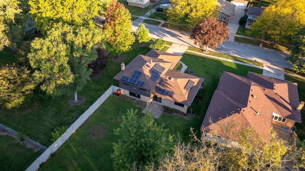 Located just steps from Rauhoff Park in a mature, tree-filled neighborhood on a beautifully landscaped lot, this move-in ready 3 Bedroom, 2 Bath split-level home is one you'll be excited to call your own! Featuring a comfortable, flowing floor plan, you'll appreciate the gleaming hardwood floors in the main living areas and all three Bedrooms (new in 2020), complemented by carpeting, ceramic tile, and vinyl plank flooring in other spaces. The well-designed Kitchen showcases ample cabinetry with crown molding, a center island with additional storage, upgraded stainless steel appliances including a 5-burner gas range and French door refrigerator, granite countertops, a custom backsplash, and a double stainless sink with an upgraded high-arc faucet-all enhanced by recessed lighting. An adjacent wet bar offers a wall of base cabinets with an expansive granite counter and upper glass-front cabinets with wine and glass racks. Sliding doors lead to a brick patio and a spacious backyard perfect for entertaining or relaxing, with direct access to the park for morning walks or playtime. Numerous upgrades include a new dishwasher and microwave (Feb 2024, under warranty until 2028), new washer (Dec 2024, under warranty until 2028), all new windows and patio doors (May 2022, under warranty; additional patio door replaced Summer 2025), new laundry room flooring, hot water tank, ejector pump, and sump pump (Dec 2021), new downstairs toilet (June 2021), new dryer and storage pedestals (March 2021), new furnace and A/C (2021), and new faucets throughout (Feb 2020). The home is also equipped with solar panels for energy efficiency and reduced electricity costs. Conveniently located near Harlem Ave. shopping and restaurants, with easy access to public transportation and major highways for quick commutes to downtown Chicago-this is the perfect place to call home. View it! Love it! Buy it!