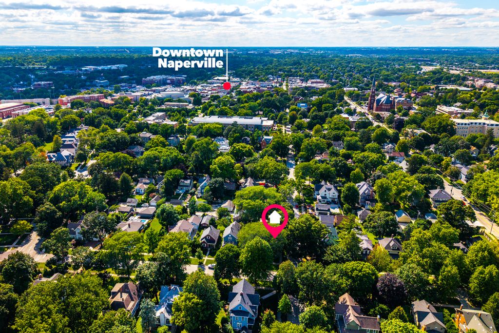 Conveniently located within walking distance of a Charming two-story home in Naperville's Historic District, situated on a corner lot in a quiet neighborhood. Inside, you'll find a practical first-floor layout with an expanded galley kitchen that features white cabinetry, butcher block countertops, a farmhouse sink, and stainless steel appliances, including a Frigidaire double wall oven with convection installed in 2022. The main level offers multiple living areas, a kitchen, and a full bath. The backyard provides ample space for outdoor activities. Recent updates ensure peace of mind and comfort: a new radon mitigation system by DuPage Radon (2022), a whole-house humidifier with two Aprilaire smart thermostats (2022), a Samsung pedestal washer and dryer (2024), two new water heaters (2025), and a new aluminum fence (2025). The roof was replaced in 2024, and professional landscaping, including tree trimming, was completed in 2023 and refreshed again in spring 2025. Original features such as tall ceilings, doors, and trim enhance the home's character. Upstairs, you'll find generously sized bedrooms, three full baths, a laundry closet, and the option to finish an additional en-suite in the primary suite. Alley access allows for extra parking. Conveniently located within walking distance of downtown Naperville, the Metra train station, schools, parks, shopping, and dining, and served by award-winning District 203 schools. shopping, and dining, and served by award-winning District 203 schools.