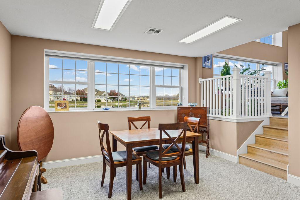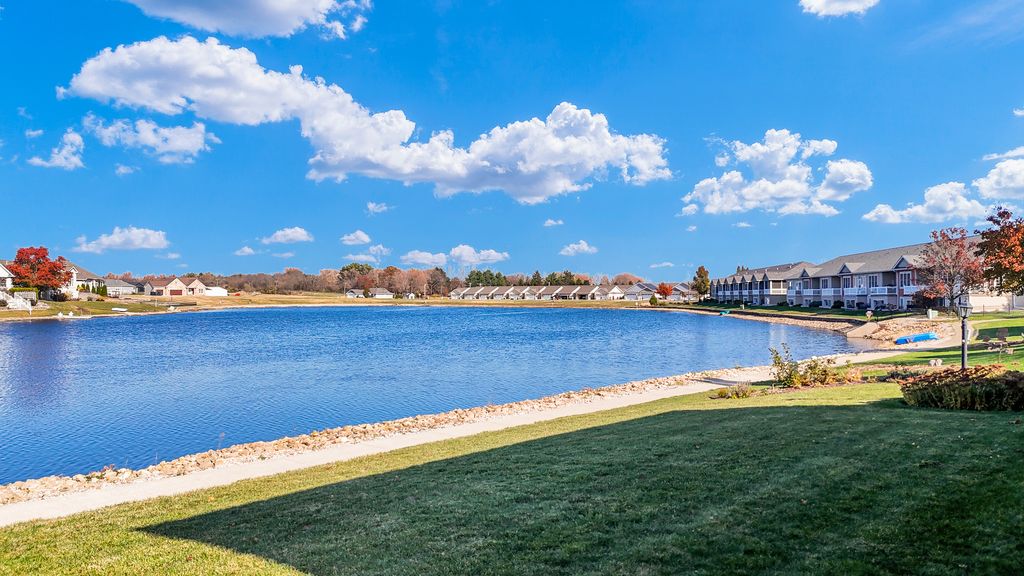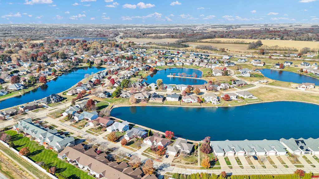 Step into the front door to a truly breathtaking view in this lake front ranch home in desirable Beringer Commons. Open concept floor plan with 10' ceilings, two giant sets of windows overlooking the water and many custom home features throughout. The main floor features a large master bedroom suite overlooking the lake, 2nd bedroom, 2nd full bathroom, large family room with fireplace, dining room, and spacious kitchen with eat-in dining space. The home has a large 3 car garage. Downstairs is a fully finished basement with two more bedrooms, full bathroom, an office/storage room, large recreation room and 6'x4' concrete encapsulated safe room. Highly efficient construction with low power bills! Setup your showing today!