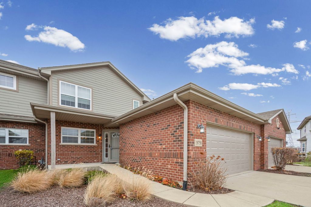 Beautiful townhome ready for immediate occupancy!! Features hardwood floors throughout the first level foyer, kitchen and living room. The 2 story living room boasts high ceilings, corner gas fireplace, and sliding door access to your private deck. The large, primary first floor bedroom includes gorgeous tray ceiling, carpet, 2 closets including 1 walk-in closet, private bath with walk-in shower with seat, and double sink vanity. Your large eat-in kitchen includes a custom designed closet pantry, granite countertops and stainless steel appliances. Main level includes powder room and large 1st floor laundry room with cabinets and utility sink. 2 car attached garage. The second level features a spacious loft, 2 additional bedrooms and spacious hall bathroom with a tub/shower combination. The large, full, unfinished walkout basement has plenty of space for your entertaining ideas, sliding door for access to your concrete patio. Cul-de-sac lot, Lake Michigan water, professional landscaping, lawn sprinklers, convenient to I-80 and train access, Lincoln-Way East High School, close to shopping and restaurants. "SOLD AS-IS"
