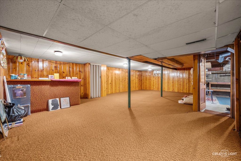 Hurry! Great opportunity! Solid brick ranch on an oversized corner lot located on Elgin's Northeast end! Quick access to I-90! Spacious living room with large picture window and plenty of natural light! Very functional eat-in kitchen with solid wood cabinetry, tile backsplash, breakfast bar and separate dining area with chair rail! Gracious size bedrooms with gleaming hardwood floors! Main floor bath with tub/shower combo! Huge finished basement with rec room with knotty pine walls, entertainment bar and separate utility/storage area! Breezeway connecting the house with garage perfect for separate sitting area! Side yard great for all the extra ideas ie garden, play area, etc! This is an estate sale, sold in AS IS condition! Solid home just needs a little updating! Bring offer!