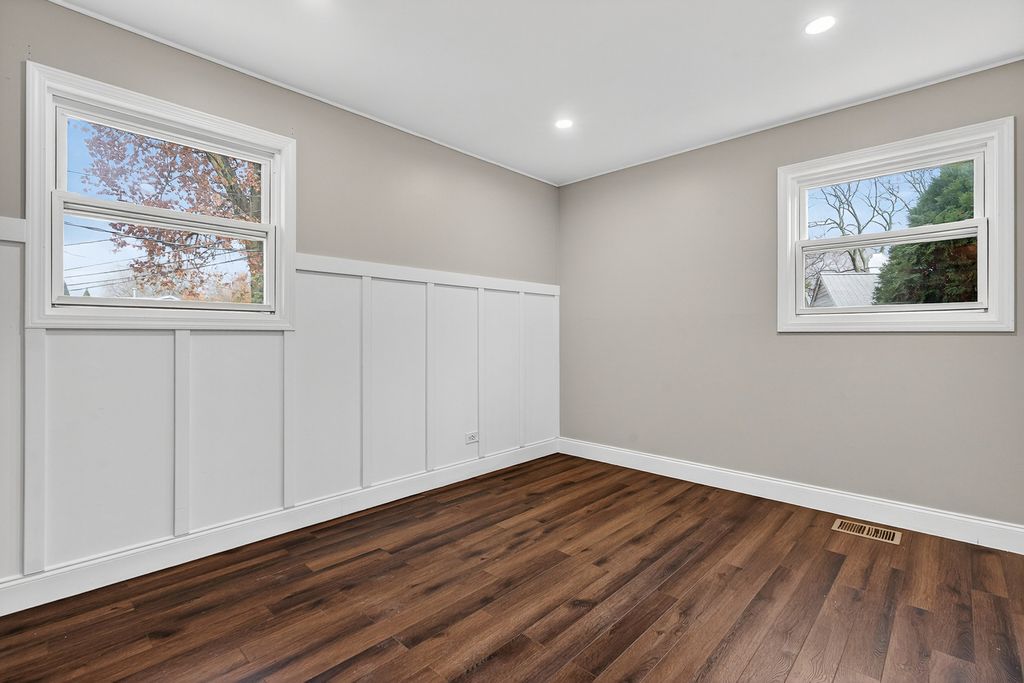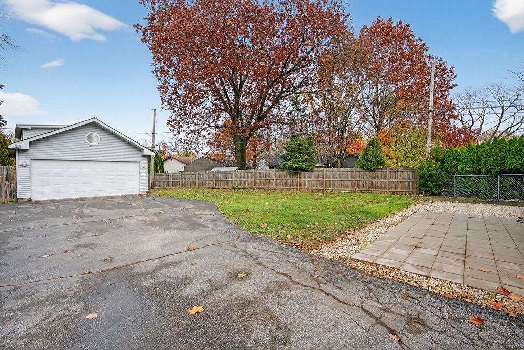 Beautifully updated 3-bedroom home offering 1,042 sq ft of living space on a generous 12,303 sq ft lot in the heart of Rolling Meadows. Step inside to find modern vinyl flooring throughout, spacious bedrooms, and a fully remodeled tiled bathroom. The home features an updated kitchen with a stainless steel refrigerator (2022), a full-sized stacked washer/dryer (2022), and modern updates throughout. A large unfinished attic provides excellent storage or potential for future expansion. Outside, enjoy a detached 3-car garage with a second floor, plus ample driveway parking-a rare find in the area. Major recent improvements include: new flooring, circuit breaker, recessed lighting, fully remodeled bathroom, and updated kitchen (2020); new washer/dryer and fridge (2022); new water heater, air ducts, and A/C condenser (2023). Ideal location just steps from multiple parks and within walking distance to downtown Rolling Meadows shopping and dining. Quick access to the highway (3 minutes) and only 3 minutes from the future Chicago Bears (Beats) stadium, making this home perfect for convenience, recreation, and long-term value. Move-in ready with outstanding upgrades-don't miss it!