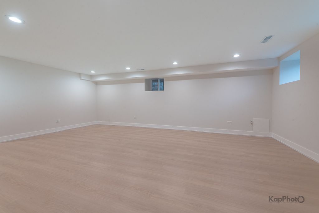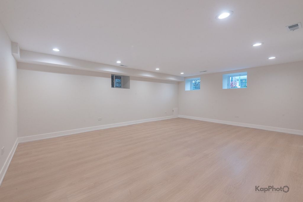 The transformation is now complete! This fully renovated and thoughtfully designed 4 bed / 2.5 bath single-family home offers exceptional curb appeal with a stately facade that sets the stage for the sophistication within. A gracious foyer welcomes you into a dramatic great room boasting 14-foot ceilings and 3.25" white oak hardwood floors, creating an immediate and lasting impression. The ideal floor plan features two bedrooms on the main level and two on the lower level, perfectly balancing function and flexibility. The chef's kitchen showcases two-tone cabinetry, a large center island, LG/GE Profile stainless steel appliances, and sleek calacatta Quartz countertops. A hallway leads to the primary suite, an additional bedroom, a powder room, and access to a spacious rear deck and backyard with fresh sod-ideal for outdoor dining or relaxation. The primary suite offers ample closet space and a luxurious bath with a walk-in shower, Kohler fixtures, glass shower panel, and designer porcelain tile. The expansive lower level is perfect for entertaining or unwinding, complete with a large family room, recessed lighting, storage, and more. This level also includes two additional bedrooms, a full bath, a laundry area, and a mechanical room. This home isn't just stunning, it has great bones with features that include a brand new 2-car garage, drain tile with waterproof membrane, new concrete slab, tankless water heater, new 200 amp electrical service, new plumbing systems, spray foam insulation, new windows by Lang, new furnace, 2-ton condenser, new gas service and meter, 5.25" baseboards, custom lighting throughout, new fencing, and so much more. Perfectly located in the heart of Bridgeport, just steps Joseph T. McKeon Jr. Park, Guaranteed Rate Field, local shops, restaurants, and so much more. This home truly combines modern luxury with neighborhood charm.