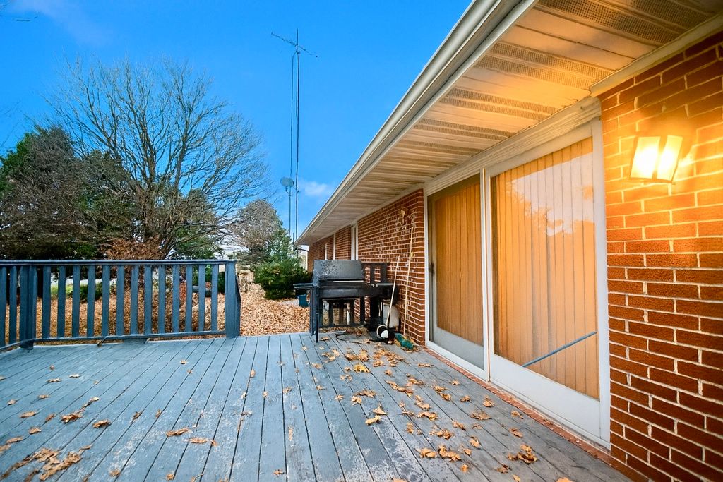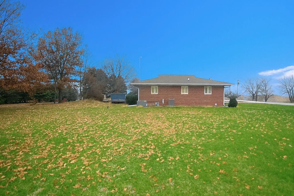 Beautiful brick ranch-style home situated on a picturesque 2-acre lot just outside of town. This well-maintained property offers timeless charm and exceptional space both inside and out. The main floor features gorgeous hardwood floors, solid wood doors and trim, and custom stone accent walls that add incredible character. The spacious kitchen includes a huge center island, abundant cabinetry, extensive counter space, and a professional-grade hood perfect for indoor grilling or high-performance cooking. The open-concept main level offers a warm and inviting living room with a stunning stone fireplace, dining area, 3 bedrooms, 2 full bathrooms, and a convenient main-floor laundry room. The full basement provides even more living and entertaining space with a large family room featuring a wood-burning fireplace, a generous wet bar, a half bathroom, and two additional finished rooms ideal for an office, hobby room, workout area, or extra storage. Outside, enjoy the peaceful surroundings from the deck off the dining room or follow the unique stone-paved path to a sunken patio area - the perfect spot for a future fire pit or cozy outdoor gatherings. The property also includes a large 2.5-car attached heated garage. This exceptional home offers space, character, and an amazing country setting while still being close to town. A must-see!