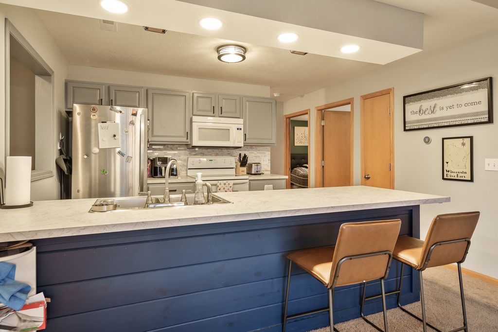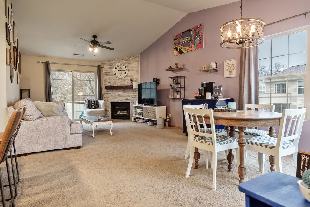Sharp 2 bed, 2 bath upper condo unit in a great Roscoe location near bike path, library, shopping & highway! Open and popular floor plan with cathedral ceilings and tons of natural light is great for entertaining. Kitchen has counter height breakfast bar area with plenty of seating room. All appliances stay! Master bedroom has huge walk in closet an spacious master bathroom. Second bedroom overlooks backyard. Main floor laundry/storage. Unit offers front and back decks with sliders for a very light & bright feel! Attached garage.