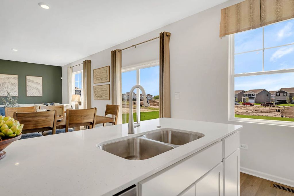 Discover yourself at 15112 W Cambridge Ln Manhattan, IL, a beautiful new home in our Ivanhoe community. This home is ready for a fall move-in! This large, scenic homesite includes a huge lot, extended front porch, full basement and fully sodded yard. This Bellamy plan offers 2,052 square feet of living space with a flex room, 4 bedrooms, 2.5 baths, 9-foot ceilings on first floor, and full basement. Entertaining will be easy in this open-concept kitchen and family room layout with a large island with an overhang for stools, 36-inch designer cabinetry with all the storage space you will need. Additionally, the kitchen features a walk-in pantry, modern stainless-steel appliances, quartz countertops, and easy-to-maintain luxury vinyl plank flooring. Enjoy your private getaway with your large primary bedroom and en-suite bathroom with a raised height dual sink, quartz top vanity, and walk-in shower with ceramic tiled walls and clear glass shower doors. Convenient walk-in laundry room, 3 additional bedrooms with a full second bath and a linen closet complete the second floor. All Chicago homes include our America's Smart Home Technology. Photos are of similar home and model home. Actual home built may vary.