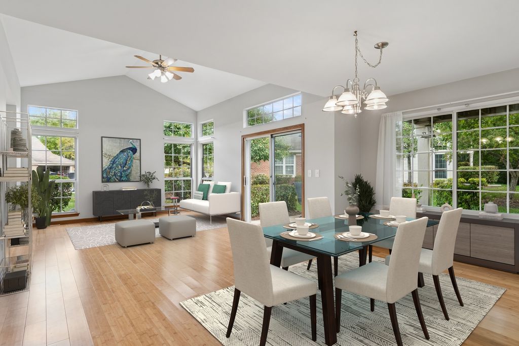 RANCH CORNER END UNIT in the sought-after Maple Hill subdivision! Maintenance-free living awaits in this ground-level, ranch style home featuring a bright and open floor plan. The entire home has been freshly painted in today's colors, making it move-in ready! The living and dining areas showcase new bamboo wood flooring, vaulted ceilings and transom windows, filling the space with natural light. The foyer, kitchen and breakfast nook feature new stylish premium vinyl flooring. The kitchen offers stainless steel appliances, a spacious breakfast nook, and a large walk-in pantry to keep everything organized. The primary bedroom easily fits oversized furniture and features a walk-in closet with ample space for storage. Newly renovated private bath with a comfort-height vanity, updated lighting, shower with ceramic tile surround and trendy clear glass shower door. A full hallway bathroom is perfectly located near the second bedroom, with a convenient linen closet nearby for extra storage. The laundry room offers plenty of space for folding, hanging, and organizing. The 2 car garage includes an interior access door for easy grocery unloading and extra storage. Relax on the private patio and take in the serene, natural surroundings. Living in Maple Hill means access to fantastic amenities, including a community pool and clubhouse-ideal for summer fun and social gatherings. Best of all, lawn care, snow removal, and exterior maintenance are all taken care of for you! If you are looking for ranch style end unit and want to live in one of Warrenville's most peaceful and well-maintained communities --- Look no further. Located just minutes from Kress Creek Farms Park, Blackwell Forest Preserve, and St. James Farm Forest Preserve, you'll have endless opportunities for hiking, biking, fishing, and more. Plus, you're close to shopping, dining, entertainment, and I-88 for an easy commute.
