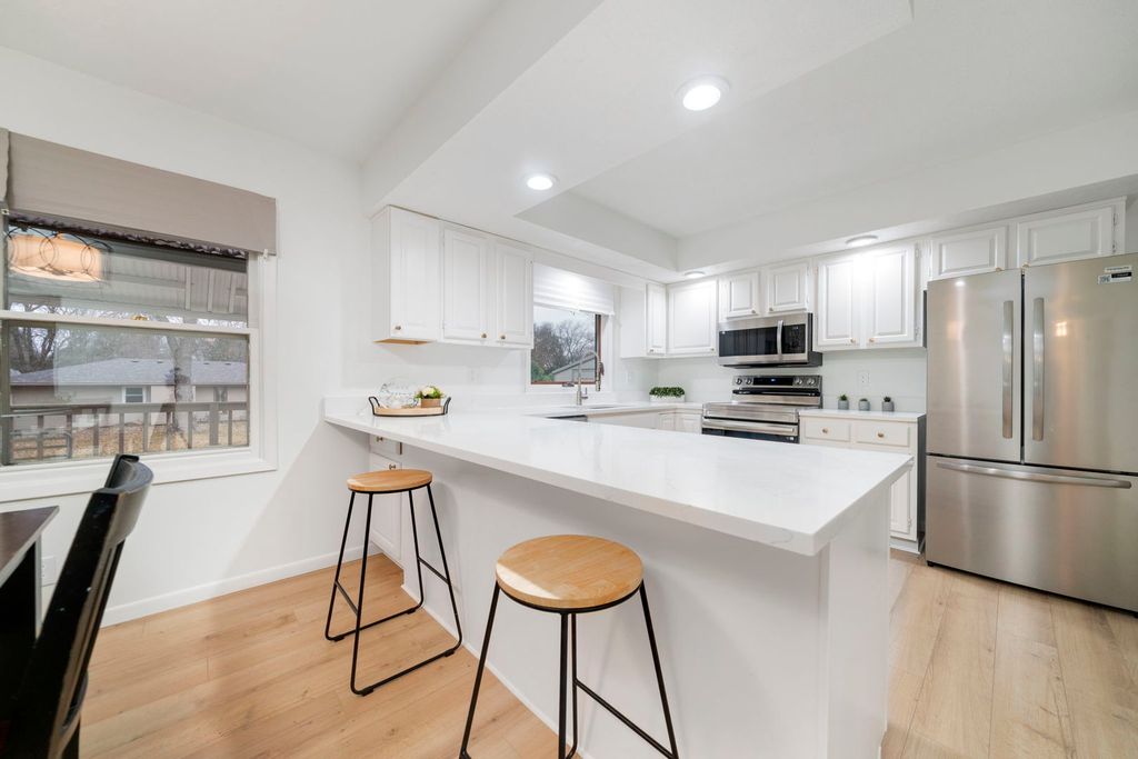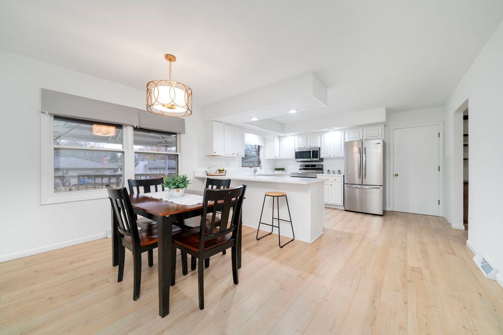Discover the perfect blend of comfort and convenience in this beautifully maintained home. Nestled in a peaceful neighborhood, yet just minutes from parks, shopping, and dining, this property offers the best of both worlds. Step inside to soaring vaulted ceilings with exposed beams in the living room, filling the space with natural light and character. The newly updated kitchen is a chef's dream, featuring quartz countertops, stainless steel appliances, and a generous eat-in area for casual dining. Three large bedrooms provide plenty of room for everyone, while the clean, unfinished basement offers endless possibilities for expansion. Outside, enjoy a spacious backyard perfect for play, plus a large deck with metal gazebo-ideal for relaxing or entertaining. Furnace/AC (2019), Water Heater (2025), Roof (2012). This home combines modern updates with a serene setting, all within easy reach of parks and everyday amenities.