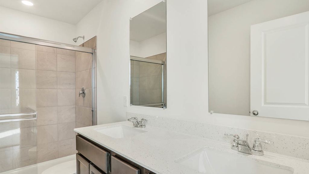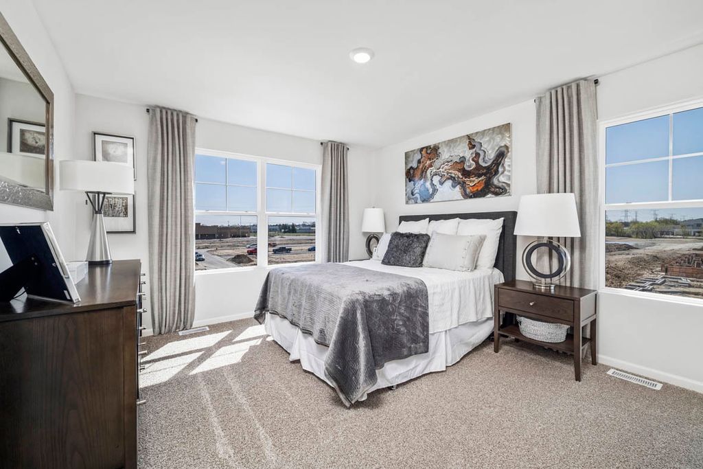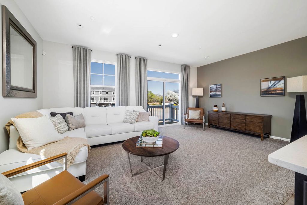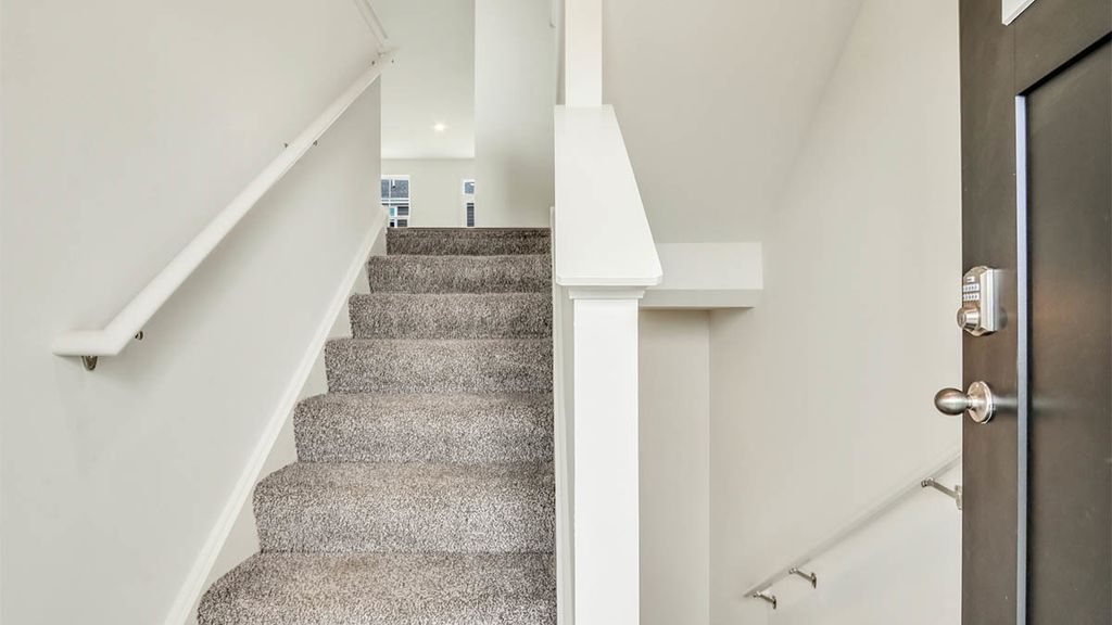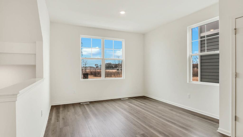 Find your way to 2170 Glacier Street in Mundelein, Illinois, a modern new townhome for sale in our Townes at Oak Creek community. This new construction townhome is ready for you now. Homesite includes a fully sodded yard with landscaping as well as snow removal in the wintertime. This End Unit, Garfield townhome plan offers 1,752 square feet of living space with 3 bedrooms, 2.5 baths, and a finished flex room. As you step inside the home you enter a split-level foyer, downstairs is a fully finished flex room, perfect for a home office or playroom. Walking up the stairs to the main level you will find this home's open concept living with 9-foot ceilings and luxury vinyl plank flooring throughout the kitchen, dining, and bathrooms. The expansive kitchen features a large island that is ideal for everyday living and overlooks both the front dining and back great room areas, making it the perfect space to entertain. Additionally, your kitchen includes Quartz countertops, 42" designer cabinetry with soft close doors and crown molding, stainless steel appliances and a pantry. Arriving at the top floor, you'll find the primary suite, secondary bedrooms with a full second bath, linen closet, and laundry room. The spacious primary bedroom suite includes a large walk-in closet and connecting en-suite bathroom. This Chicago home includes our America's Smart Home Technology. Photos are of a similar home. Actual home built may vary.