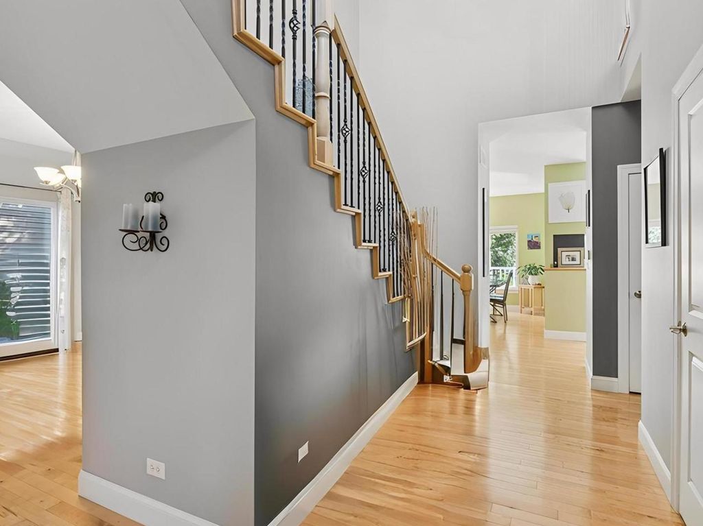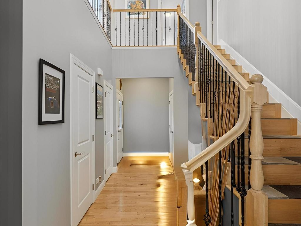 Stunning Frank Lloyd Wright-inspired home offering unparalleled architectural character and exceptional living space. A dramatic two-story foyer introduces the illuminated wraparound balcony and sets the tone for the grandeur throughout. Elevated ceilings and abundant natural light enhance the home's open, airy feel. The Chef's Kitchen features an island, pantry, extensive cabinetry, and sleek black granite countertops, flowing seamlessly into the spacious living room with a built-in entertainment center, surround-sound wiring, and a wet wine bar with wine refrigerator. The dining room connects from two points, creating an ideal layout for entertaining. Natural slate and hickory hardwood flooring span the main level, staircase, and upper balcony. The upper level offers a beautifully appointed Guest Suite with vaulted ceiling, private balcony, walk-in closet, and en-suite bath. Additional bedrooms include generous closets, along with a vaulted tower/atrium room perfect for reading or relaxing. The Main Suite is an impressive retreat with four-way vaulted ceiling, serene views of the wooded yard and pond, sitting area, private balcony, luxurious bath with jacuzzi tub, large shower, dual vanities, and an expansive Dressing Room with direct access to the upper-level laundry. The walk-out lower level is built for entertaining, featuring a full wet bar, spacious recreation areas, and access to the patio with a striking three-story stone fireplace and pergola. A staircase leads to the deck off the kitchen for seamless indoor-outdoor living. Car enthusiasts will appreciate the garage equipped with a mechanic's lift, accommodating up to four vehicles. Additional highlights include a main-level office with fireplace, a 2,200-sq-ft fenced garden with large pergola, new roof, new driveway, updated mechanicals (furnace, AC, tankless water heater), abundant storage, and more. Sellers are motivated and ready to move. This is a home that truly must be experienced in person-photos and descriptions simply cannot capture its scale, character, and exceptional design. Serious buyers will not want to miss this opportunity. Photos don't fully capture how impressive the space feels in person. Updated professional images are coming soon-weather conditions have caused a brief delay.