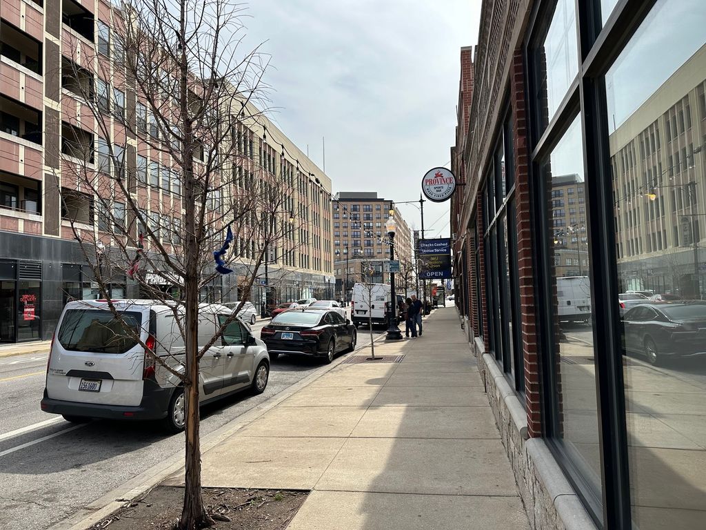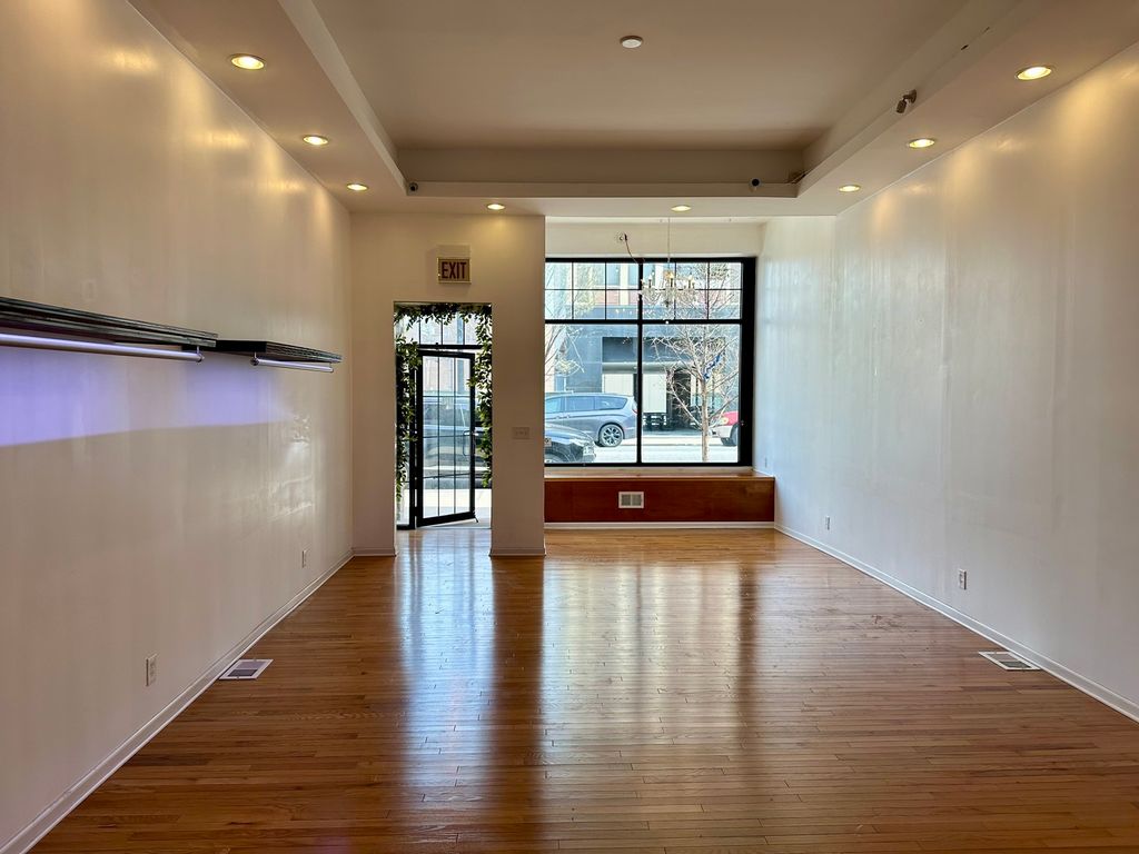 Six Corners in the Portage Park! Great exposure on busy Milwaukee Ave. Light and bright unit abundant of natural light. Opened space concept, large frontage / reception / 2 fittings room . One bathroom. You also will have possession of a large 1350 sq ft finished basement. Great space for new or existing business