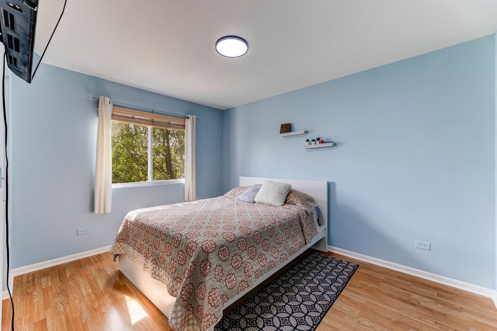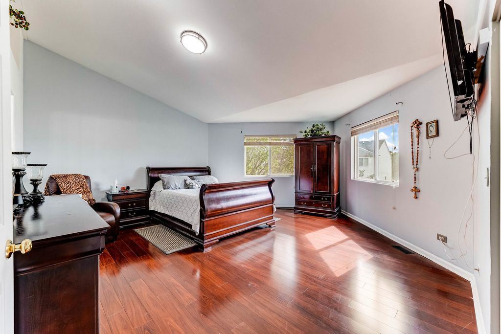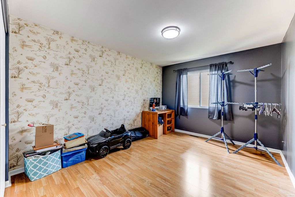 Beautifully maintained home, freshly painted inside with newly painted exterior windows. Kitchen includes stove, refrigerator, and microwave with vented hood range-all stay-plus washer and dryer. Recent updates include roof (3-4 yrs), fence (4 yrs), sump pump, and freshly sealed driveway for 4 cars. Features a cozy gas/artificial fireplace, abundant natural light, and can lights through, and landscaped garden with gazebo included. Basement includes rough-in ready for a toilet installation. HOA covers maintenance of surrounding shared parks and community entrance. Note: Small wine fridge, front statues, and decorative front house remain with seller. SOLD AS IS !
